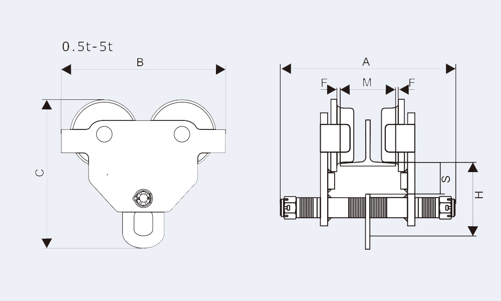 山東五牛GCT-A 手推單軌小車與手拉葫蘆或其它起重工具配套使用,安裝于工字鋼軌道的下翼緣上,組成起重運(yùn)輸小車,用戶均可特殊訂購,我廠還可根據(jù)用戶來圖、來樣或特殊要求設(shè)計(jì)制造,小車車輪采用鼓形路面,用戶如需要錐形路面。可提出特殊訂貨,除表列標(biāo)準(zhǔn)運(yùn)行高度外,在12米以內(nèi)各運(yùn)行高度均可訂貨,由于我們的產(chǎn)品不斷改進(jìn)發(fā).展,因此產(chǎn)品的詳細(xì)結(jié)構(gòu)可能與樣本有出入。