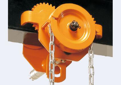 其次、手推單軌行車的使用方便,只需將小車放置在工字鋼上,將重物放置在小車下方,拉動鏈條就可以利用校車對重物進行調(diào)運工作,方便快捷。不僅如此,小車采用輪滑原理制作,使用小車可以省時省力的完成吊運工作。