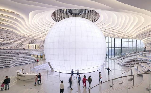 這個(gè)圖書館共有6層,室內(nèi)裝修別出心裁。圖書館整體造型前衛(wèi)并且有科技感,整體采用的是鋼框架和玻璃幕墻結(jié)構(gòu),從遠(yuǎn)處看如同一只鑲嵌的大眼睛。話說這鋼框架的設(shè)計(jì)使用可是耗費(fèi)了大量的人力、物體,框架較高一般的機(jī)械設(shè)備無法吊運(yùn),最后裝修工人使用手拉葫蘆與單軌小車才完成鋼框架的吊運(yùn)安裝作業(yè),這也成為了書店裝修的點(diǎn)睛之筆。